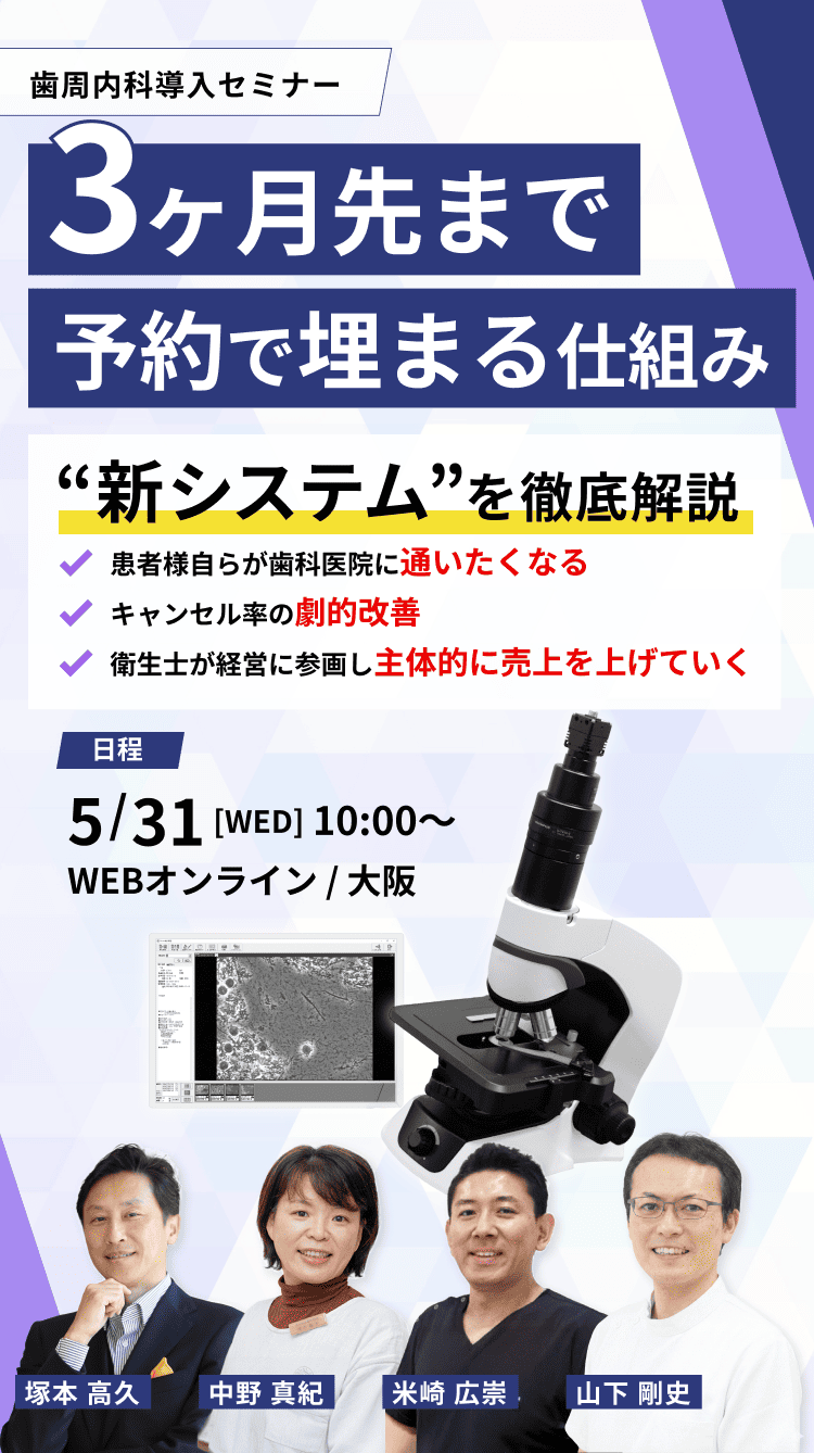1日のセミナーで、歯周内科治療の歴史、導入方法、運用まで幅広く学ぶことができ、非常に充実した内容でした。 学んだ知識を院内に還元し、スタッフも自発的に患者さんの病態を菌の状態も踏まえて評価・報告できるようになりました。